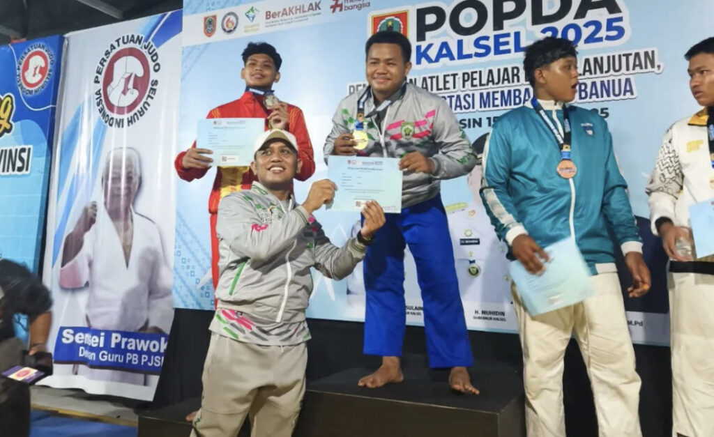 FokusInformasi.com, Balangan – Kabupaten Balangan berhasil meraih medali emas pertama dari cabang olahraga Judo dalam gelaran Pekan Olahraga Pelajar Daerah (POPDA) tingkat Kalimantan Selatan 2025 yang berlangsung di Kota Banjarmasin. Kemenangan ini menjadi kebanggaan tersendiri bagi kontingen Balangan.